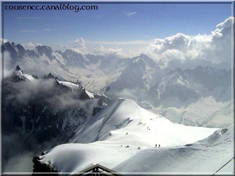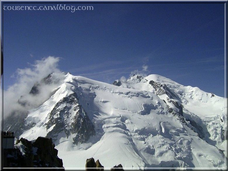 La note est quand même un peu salée, ah « cher » tourisme! A 3842 m d’altitude, la vue est grandiose mais l’air se raréfie.On contemple le mont Blanc dans toute sa splendeur et on prend un bon bol d’air (celui-là n’est pas pollué normalement)