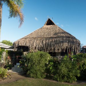 Après cette journée bien remplie, une bonne douche et au lit ! Nous sommes réglés sur la vie polynésienne qui commence tôt la journée avec le lever du soleil vers 5h30-6h et se termine également avec son coucher à 18 h. Ce qui est surprenant c’est la vitesse à laquelle le soleil se couche : un instant c’est le crépuscule et le moment suivant la nuit tombe d’un coup ! Alors extinction des feux à 21 h !
