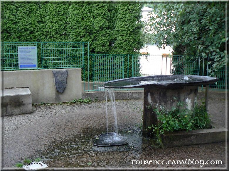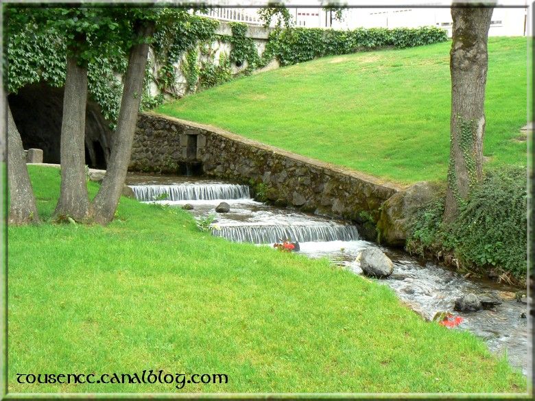 Nous trouvons le nouveau camping tout neuf avec une aire de services extérieure et un parking. nous demandons si nous pouvons passer la nuit sur ce parking et la gentille dame qui m’a reçu m’informe que nous pouvons rester car il est prévu une nuit gratuite pour les cc de passage. Le top! nous nous installons donc après avoir vidangé et nous déjeunons. L’après-midi nous allons à la pêche aux renseignements au désormais célèbre office du tourisme. ..Pour trouver porte close! Sachez-le, il est fermé le dimanche après-midi, re grrr! Nous voulions faire une petite randonnée-balade dans les environs mais j’ai malencontreusement oublié mes chaussures. Tout concoure à nous faire rester dans le camping-car devant une partie d’un jeu quelconque mais nous ne renonçons pas et malgré les quelques gouttes de pluie qui se sont invitées sans être conviées nous persèvérons et montons jusqu’au site des eaux de volvic.