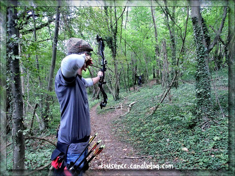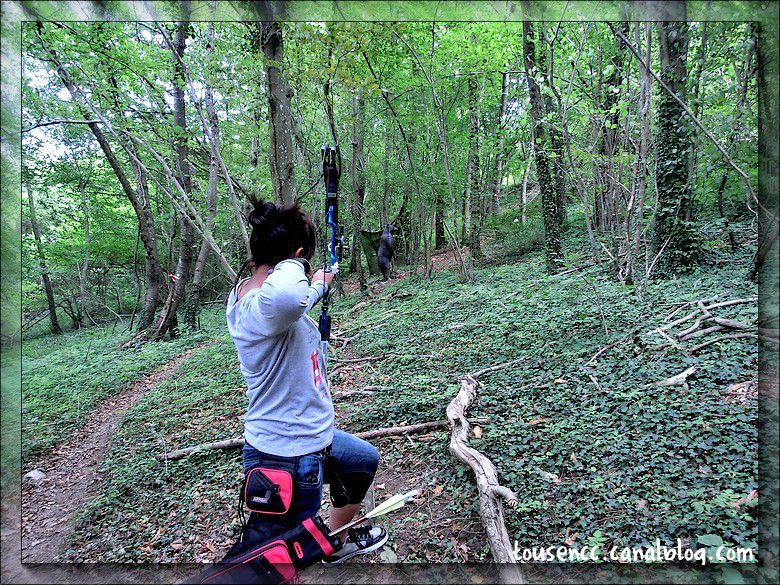 Nous prenons la route du Vercors pour un arrêt dans un petit camping à la ferme qui propose un circuit de tir nature pour mes archers préférés. Cela consiste à suivre un circuit en sous-bois où sont disséminées différentes cibles d’animaux factices que l’on doit toucher par un tir de flèche. Malheureusement Nolwenn étant débutante, elle ne possède pas d’arc et nous devions nous en prêter un mais cela n’a pas pu se faire. Elle s’est donc contentée de suivre Christian et Sarah-Maeva pour prendre de sympathiques photos.