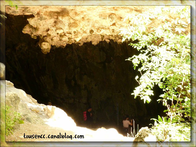Nous nous dirigeons sur l’entrée de la grotte par un petit sentier à flanc de falaises, sous un magnifique soleil.